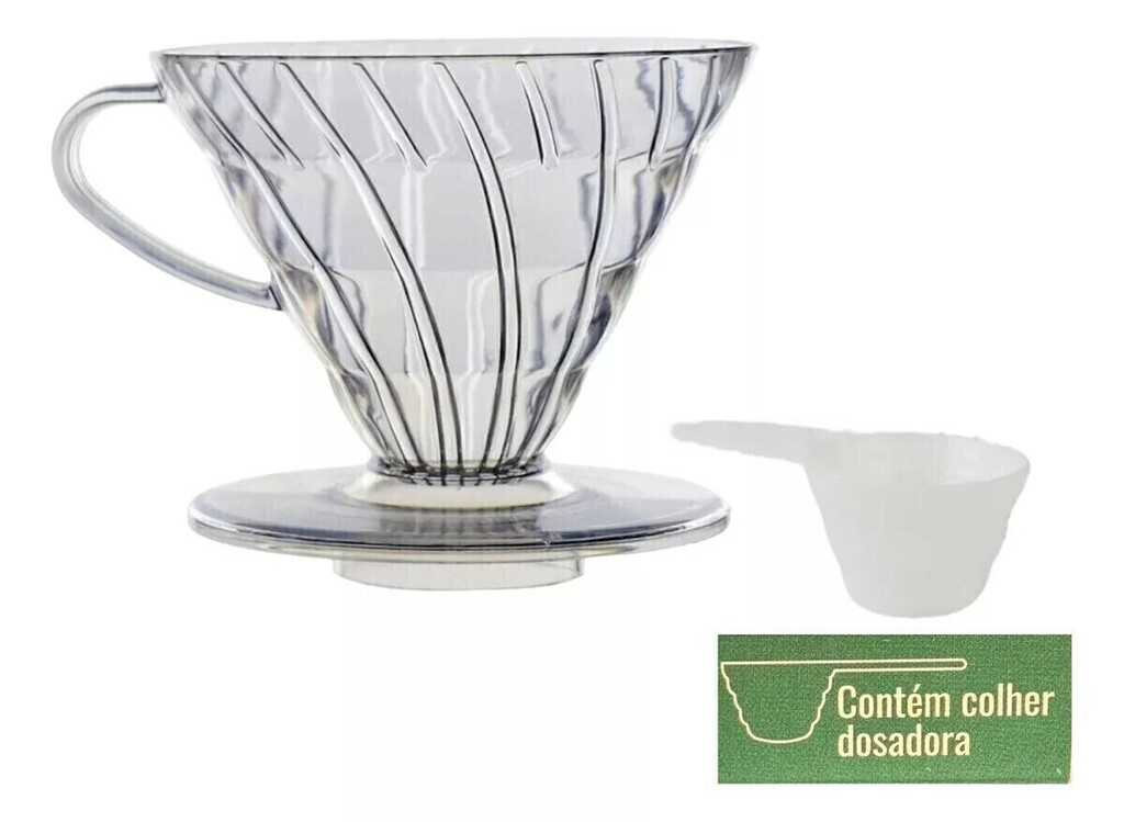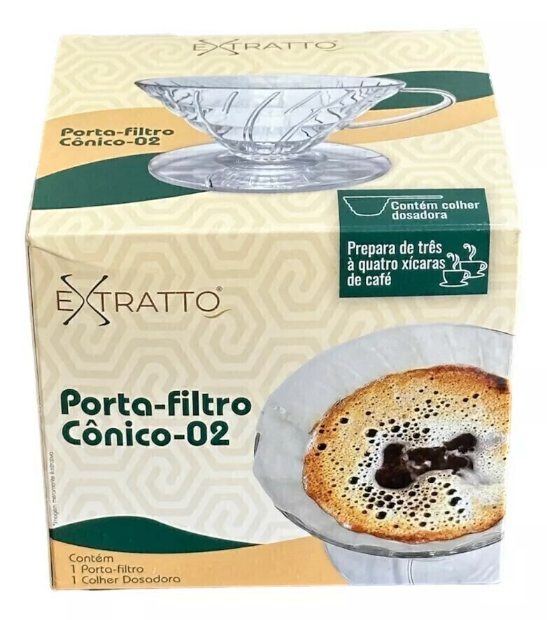 Porta-filtro em acrílico de formato cônico, transparente e tamanho 02 (permite o preparo de 1 a 4 xícaras de café).